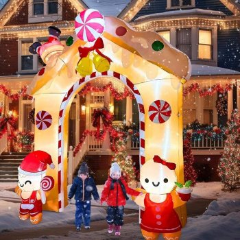 10 ft Christmas Inflatable Gingerbread House Archway with LED Lights and Candy Decor